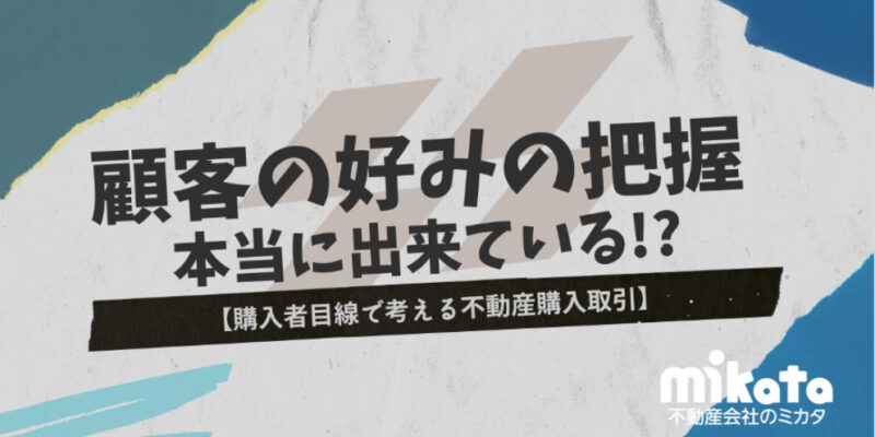 初回接客・案内術【購入者目線で考える不動産購入取引】顧客の好みの把握は本当に出来ている!?不動産仲介業務をされているみなさんは日頃の営業活動において、どのようなことを意識しているでしょうか? この記事をお読みい