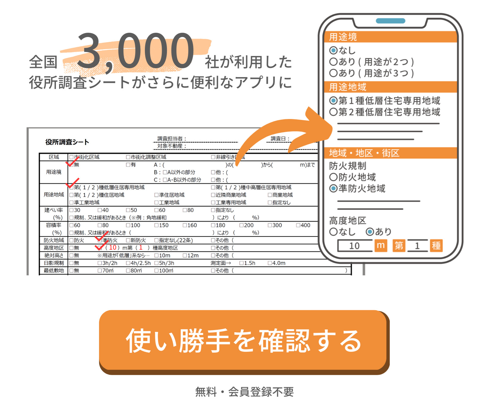 もしまだ役所調査シートを定型化できていない不動産会社様がいらっしゃれば、ミカタの無料調査シートを是非ご活用ください!