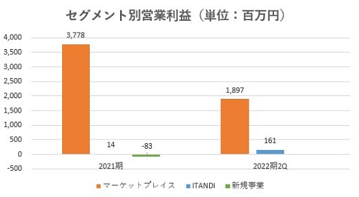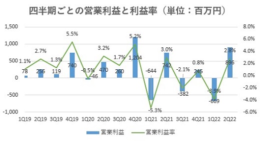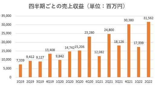 直近3期と2022期2Qの売上収益と営業利益は以下のとおりです。