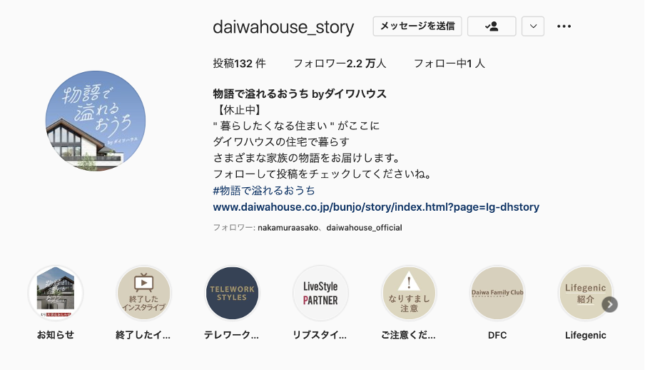 https://www.instagram.com/daiwahouse_story/ 2.2万人 132 120前後