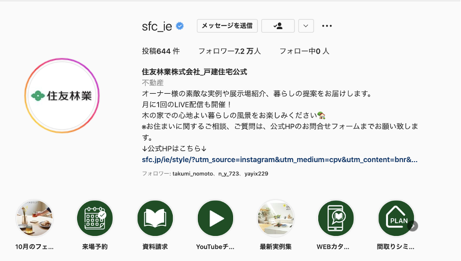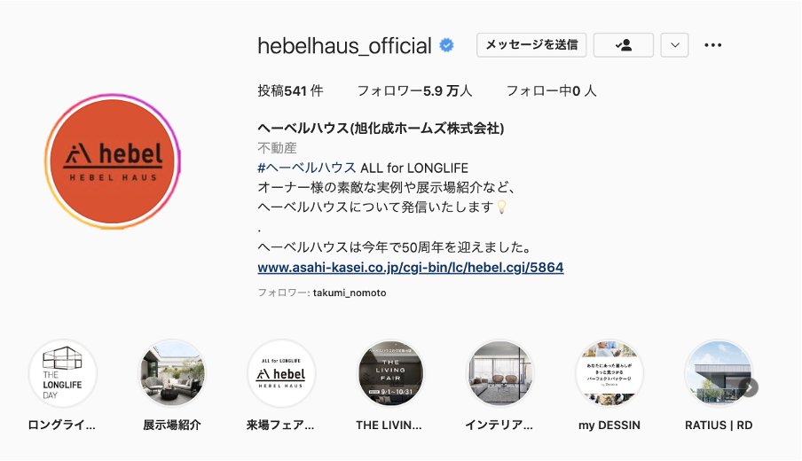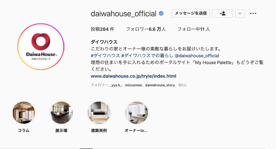 https://www.instagram.com/daiwahouse_official/ 6.6万人 284 800前後