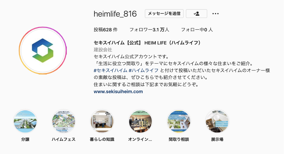 https://www.instagram.com/sekisuihouse/ 11.2万人 424 1100前後