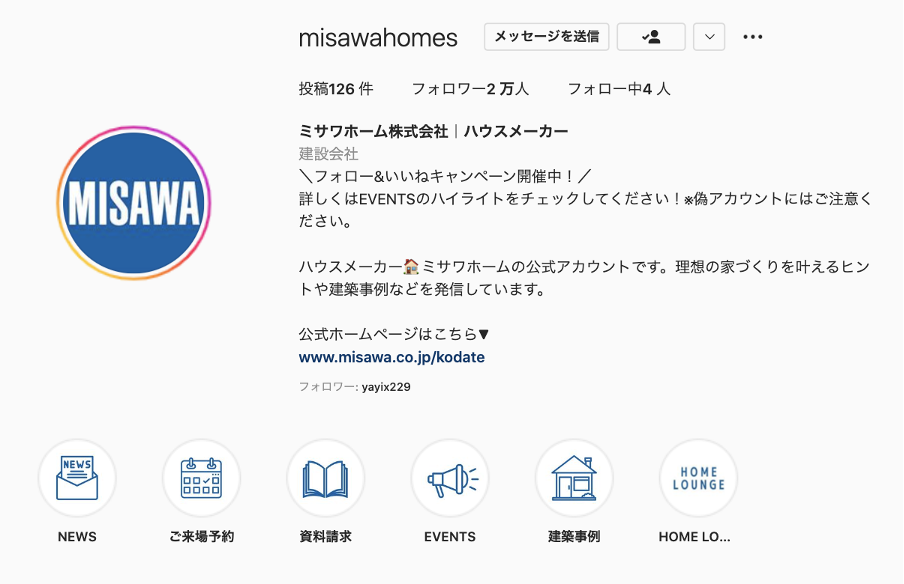 冒頭でも触れたように、SNSは写真や動画といった「視覚的訴求」に長けている特長があり、実際に物件を決める時には「内見」をしたり、お家づくりでは「モデルハウス」を訪れて参考にしたりする傾向のある住宅・不動産業界とは相性が良いと言えます。