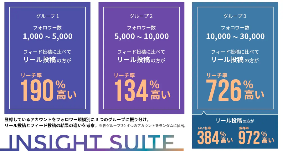 参照:Instagram分析ツールInsight Suite、企業アカウントのリール投稿を調査し衝撃の結果に!