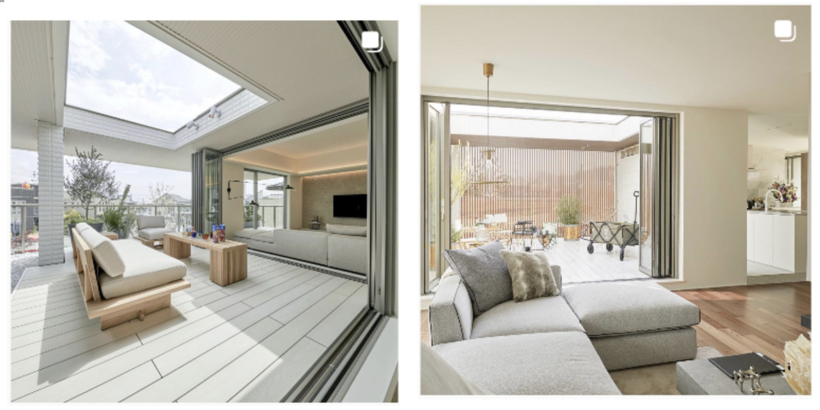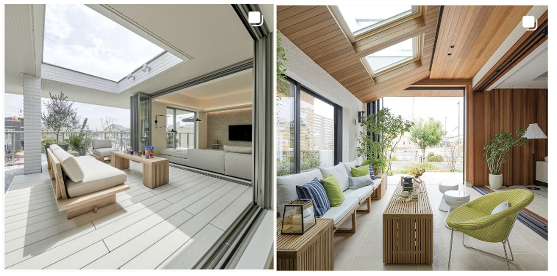 1つ目が屋内と屋外が一つの空間として繋がり開放感を表現している投稿です。