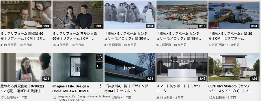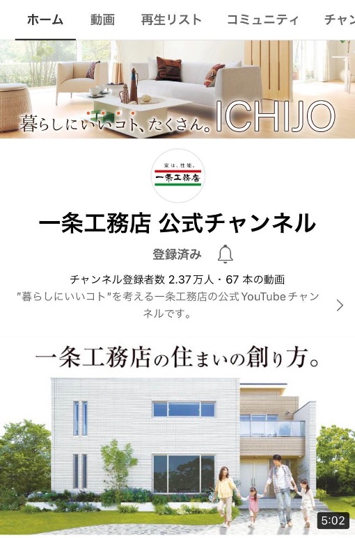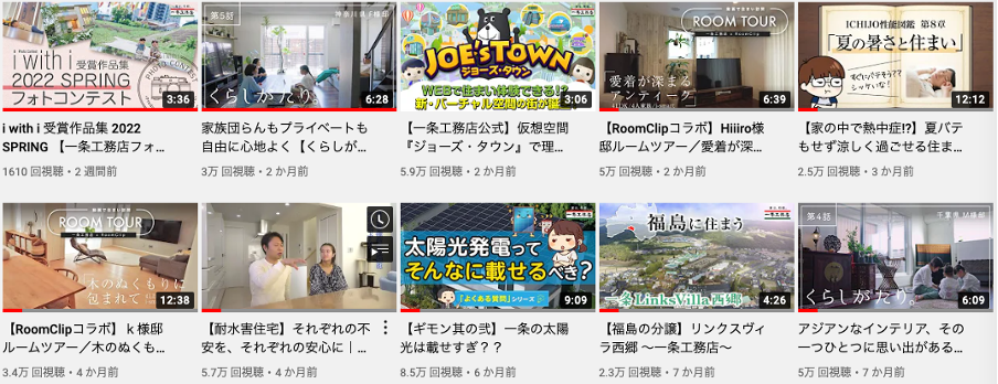 YouTubeに関して言うと、一条工務店のアカウントが一強状態です。