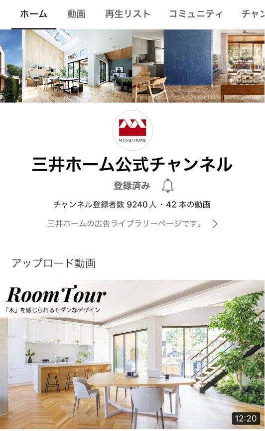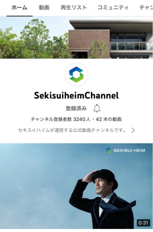 企業CMも投稿していますが、最近のメインの投稿は毎週月曜にBS-TBSで放送されている「住まいの参観日」の録画映像を使ったルームツアー動画です。