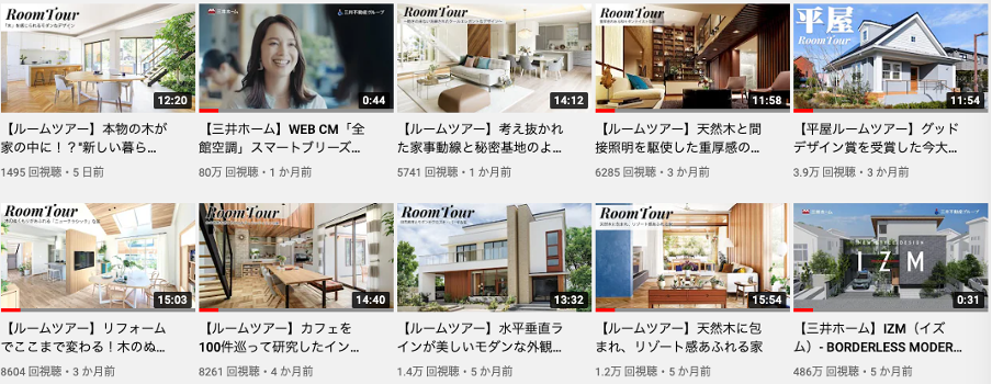 あとは、ルームツアー系の動画は実際住宅購入を検討しているユーザーにとっては一番興味関心を引くコンテンツであるため上手く活用することで実際に生活しているイメージや憧れを抱かせることができ、次のステップへの非常に効果的な入り口となります。