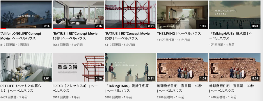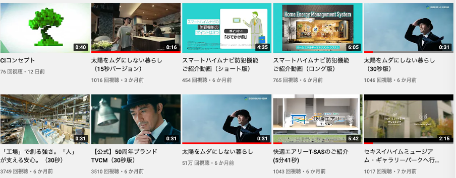 採用目的の動画や住まいの機能性を伝える動画なども投稿していますが、視聴回数が多いのは商品紹介動画となっています。