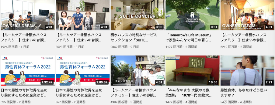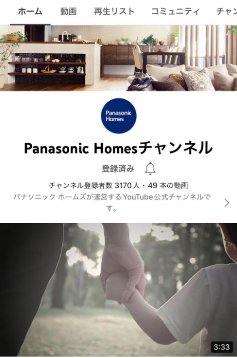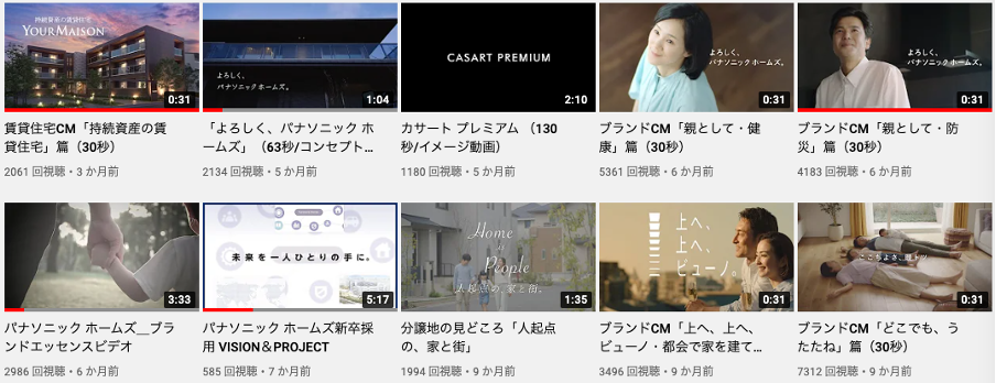パナソニック ホームズ社のアカウントでは企業CMや商品紹介動画中心に投稿しており、毎月1~3本程を配信しています。
