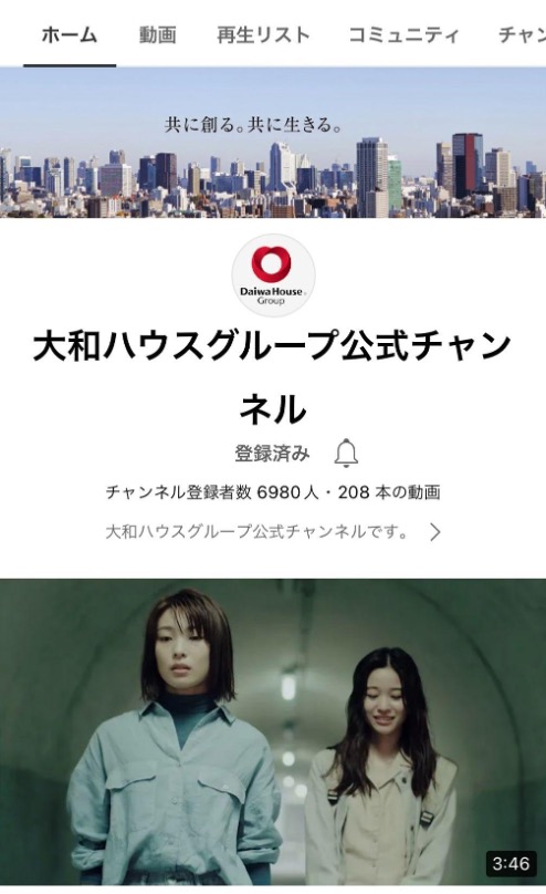 パナソニック ホームズ同様、企業CMがメインの投稿内容で、2~3ヶ月に1本程を配信しています。