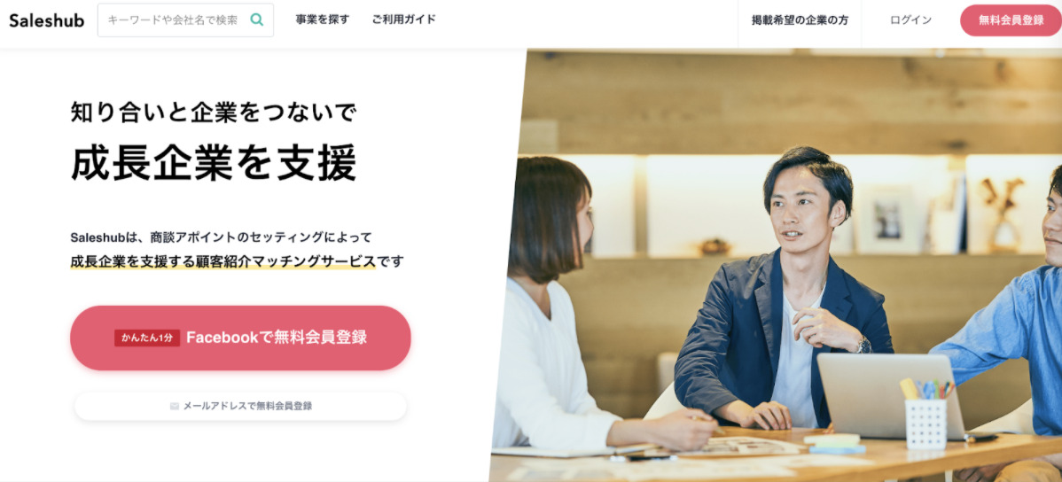 Saleshubは自分の知り合いと企業をつなぎ、商談アポイントをセッティングすることで企業からお礼の報酬としてご協力金を得ることができるマッチングプラットフォームです。