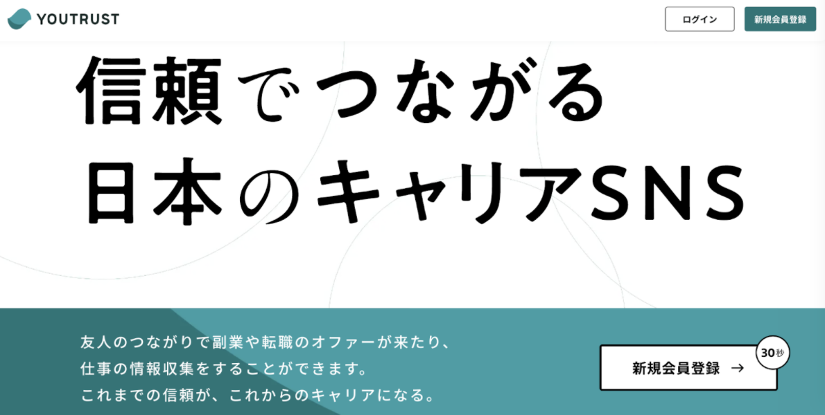 YOUTRUSTは信頼できる友達もしくは友達の友達からオファーが届き、副業・転職先と出会えるキャリアSNSです。