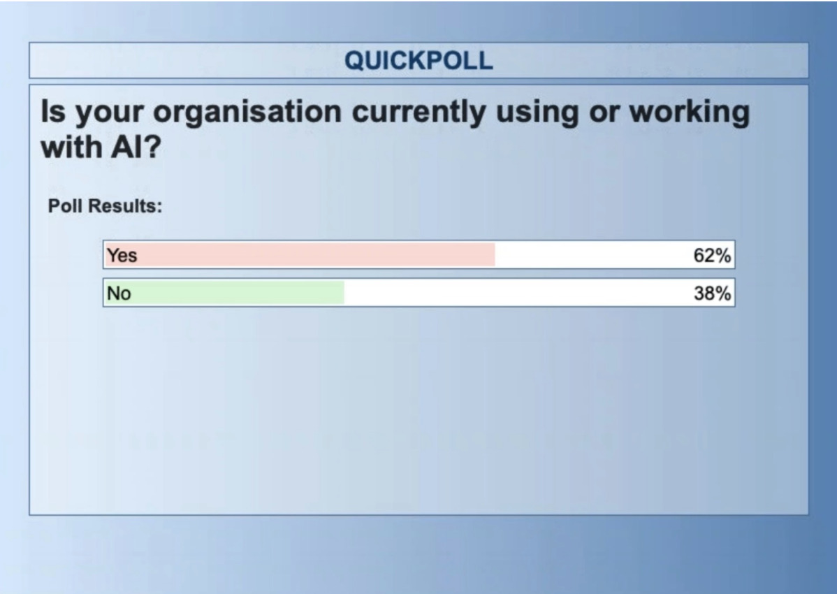 このオンラインセミナーの特徴の1つは、冒頭でまずオンラインアンケートを採って結果を表示し、視聴者のAIに対する取り組みを把握している点です。