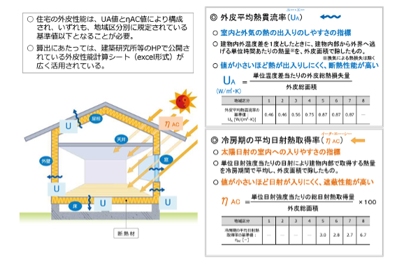 ちなみにこれまで断熱性能と表現してきましたが、正確に表現すれば、求められているのは外皮平均熱貫流率と平均日射熱取得率それぞれの数値です。