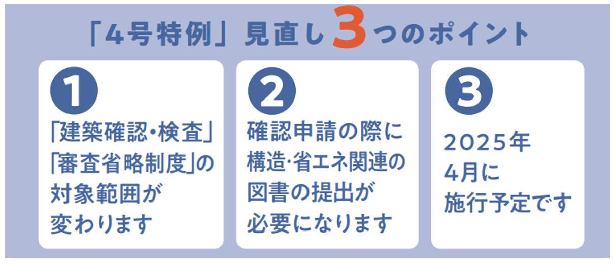 2025年4月から施行される4号特例のポイントは下記の①と②です。