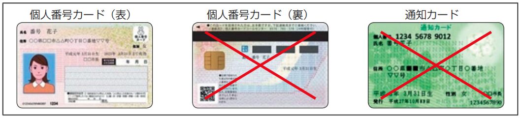 ただしマイナンバーカードについては、裏面に個人番号が記載されていますので、写しをとったり(表面は可)、個人番号を控えるような行為をしてはなりません。