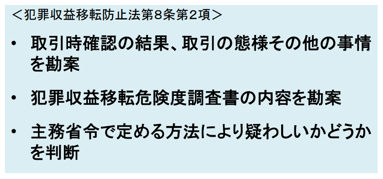 冒頭で解説したように、「疑いのある取引」については報告義務が設けられています。