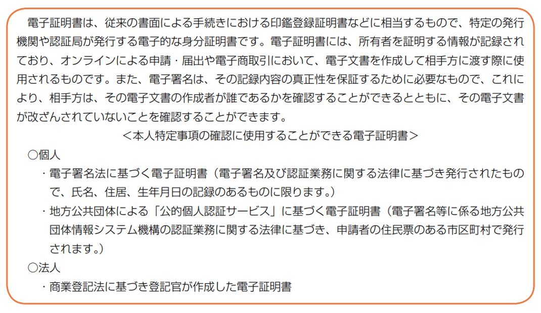 それ以外には、電子署名法もしくは公的個人認証法に準じる方法も選択肢の一つです。