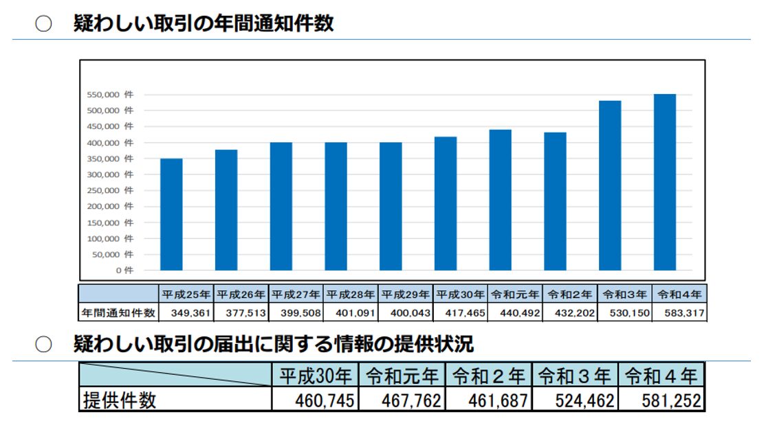 疑わしい取引に関する届出は、増加しているのです。