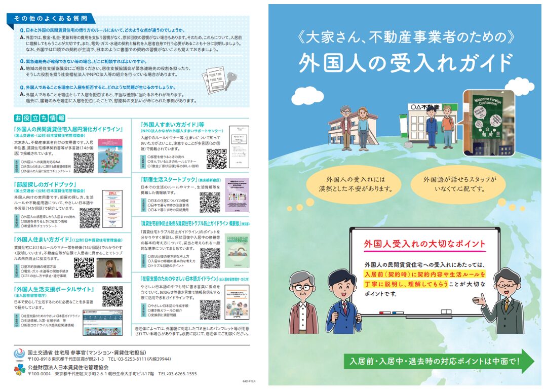 また賃貸人向けに外国人を受け入れる際のポイントをまとめた『大家さん、不動産事業者のための外国人の受け入れガイド』も参考になるでしょう。