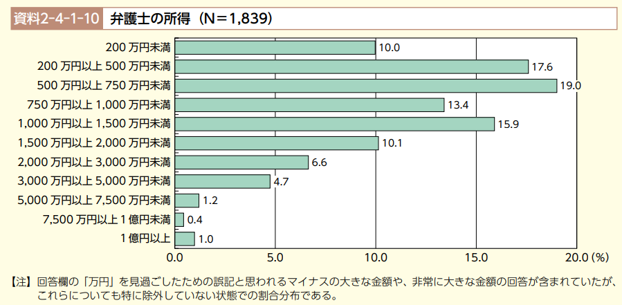 したがって、実績や経験不足の弁護士が即独(資格取得後に即独立すること)しても、依頼を受けるのは困難です。年間所得500万円未満の弁護士が27.6%いることもその証です。