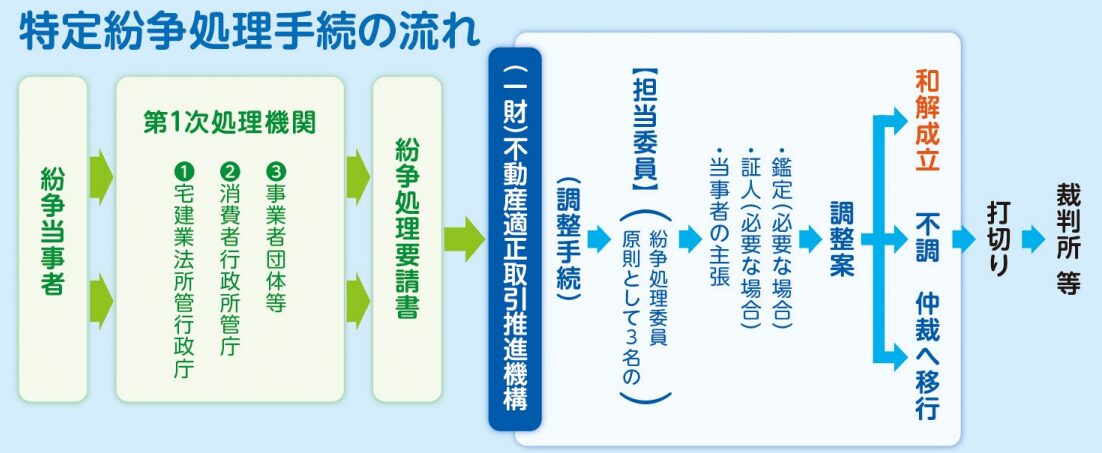 不動産問題に関するADRの取扱先としては国土交通省のほか、一般財団法人 不動産適正取引推進機構、日本不動産仲裁機構 不動産ADRセンター、国民生活センター、弁護士会紛争センター、司法書士会調停センターが挙げられます。