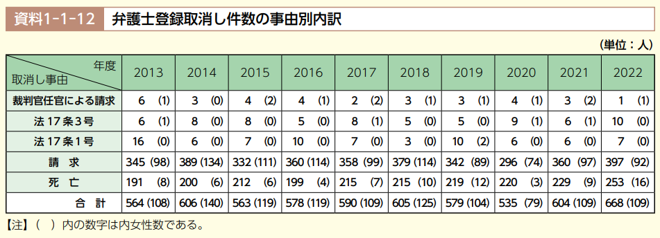 弁護士業界内の競争激化や、広告が解禁されたことによる、品位を損なう内容が含まれた広告の増加、非提携弁護士業者の暗躍などについては弁護士会も問題視しています。事実、弁護士法第58条第1項に基づく懲戒請求による登録取消件数が、2022年には過去10年間で最高を記録しました。