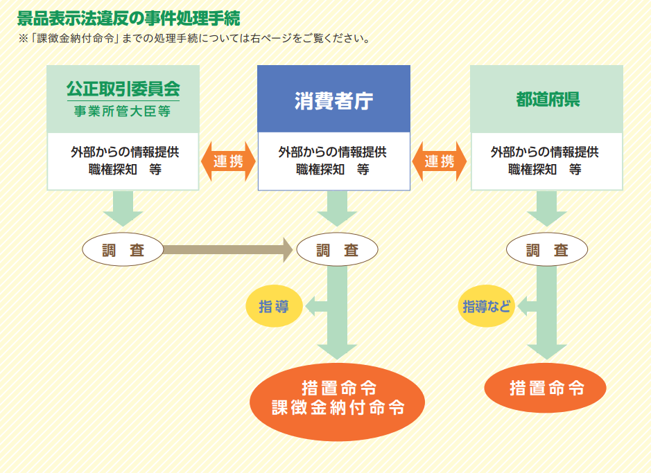 課徴金は行政罰であるため、不当広告の停止命令などを経て課されますが、罰金は刑事罰であるため、行政処分を経ない直罰として科される点に注意が必要です。