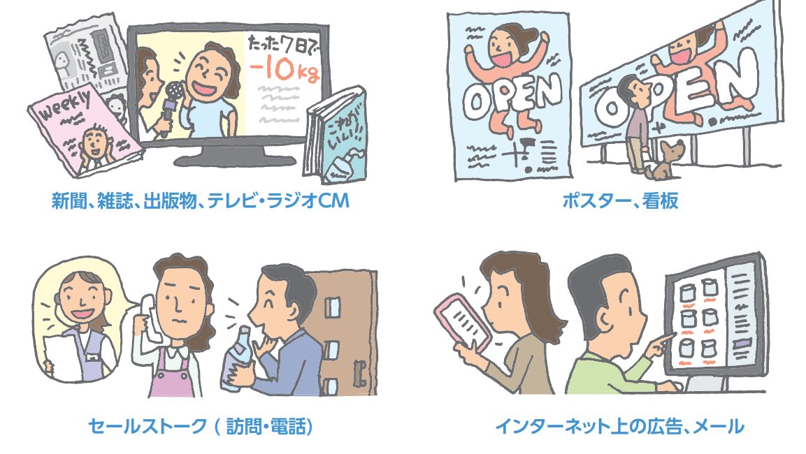 「表示」とは、事業者が商品やサービスの品質、規格、その他の内容や価格等の取引条件について、消費者に知らせる手段を指します。広告に限らず、消費者に訴求するすべての情報が対象となるのです。