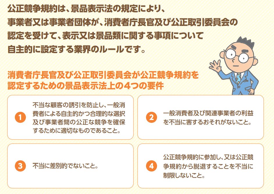 これは、景品表示法第36条で、事業者又は事業者団体は業種ごとに公正競争規約を設定し、自主規制できるとの定めがあるからです。