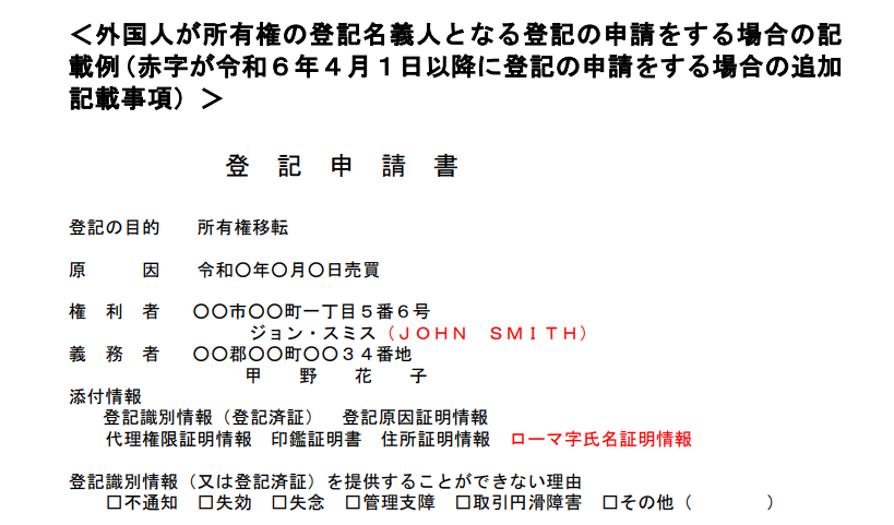 これまで、外国人が日本の不動産を取得した際の登記情報には、漢字とカタカナ表記のみが使用されていました。しかし、これではパスポートや在留カードに記載されたアルファベット表記と一致させることが難しく、本人確認が困難になるという問題がありました。改正により、登記情報に記載される外国人の氏名は、日本語とローマ字表記の両方で表記されるようになりました。