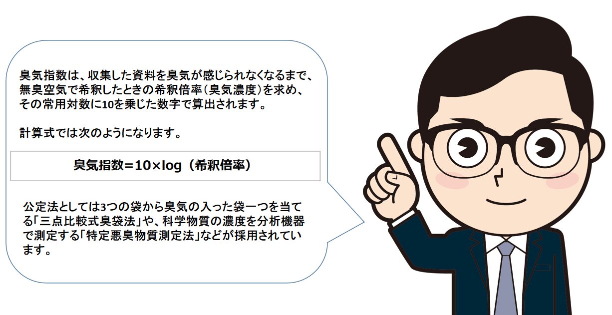 臭気指数とは、人の感覚でその臭気を感じなくなるまで希釈した際の倍率を基に算定される指標です。この基準を超える臭気が常態化している場合、規制に違反している可能性があるのです。