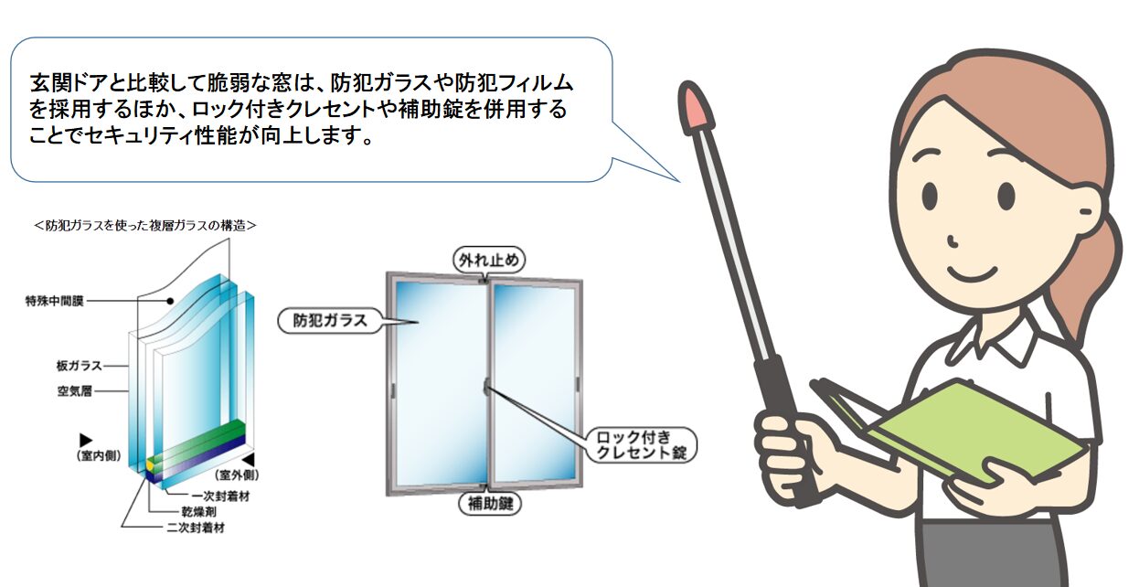 玄関ドアや窓からの侵入を完全に防ぐのは困難ですが、侵入に時間がかかる対策を講じることで、被害を大幅に減らせます。