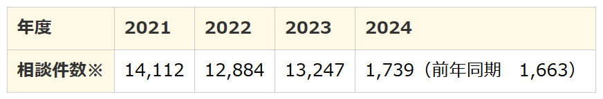 成年年齢引き下げ以降、賃貸契約を巡るトラブルが増加しています。国民生活センターが公開しているデータによれば、2021年には約14万件であった相談件数が、2024年には約17.3万件と23.6%増加しています。