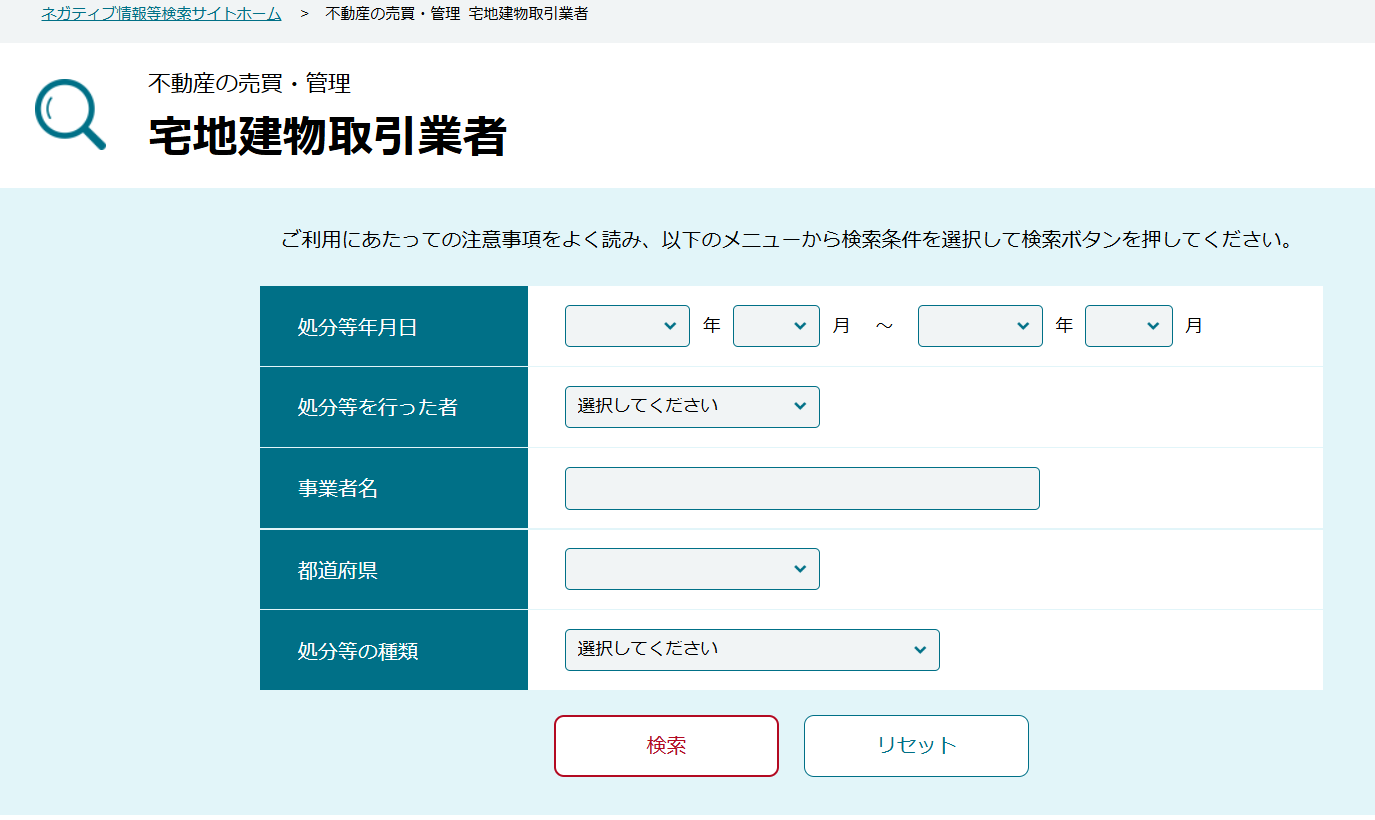 また、監督処分を受けた場合、その情報は国土交通省が運営する「ネガティブ情報等検索サイト」で公開されます。