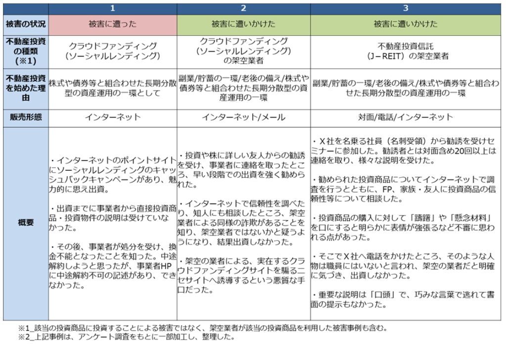 典型的な手口には、「無登録・架空業者による勧誘」と「自転車操業的な運営」があります。これらの販売はインターネットやメールを通じて行われ、投資形態としてはクラウドファンディング、不動産投資信託(REIT)です。