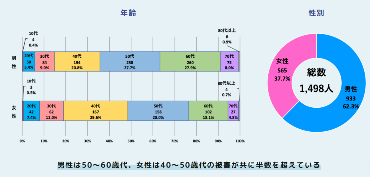SNSがきっかけであることから、ロマンス詐欺は若い世代に多い犯罪だと誤解されがちですが、実際はそうではありません。