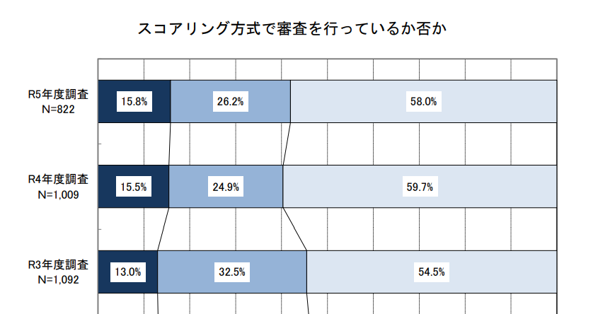 国土交通省による「民間住宅ローンの実態に関する調査結果報告書」では、金融機関の過半数(令和5年で58%)以上がスコアリング方式で審査を行っているとされています。スコアリング方式の審査は機械的で、リノベーション工事の詳細な内容について斟酌されません。