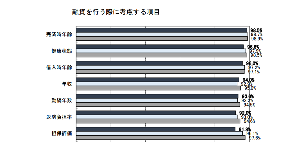 国土交通省による「民間住宅ローンの実態に関する調査結果報告書」でも、融資を行う際に考慮する項目として担保評価が挙げられています。
