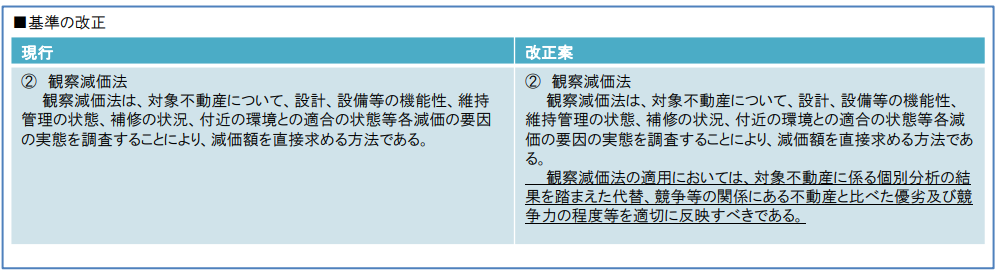 たとえば、不動産鑑定士が物件を鑑定評価する際には、「価格等調査ガイドライン」及び「不動産鑑定評価基準」に則り評価を行っています。「不動産鑑定評価基準」では、個別的要因が価格に与える影響は大きいとして、観察原価法の手法が見直されているのです。