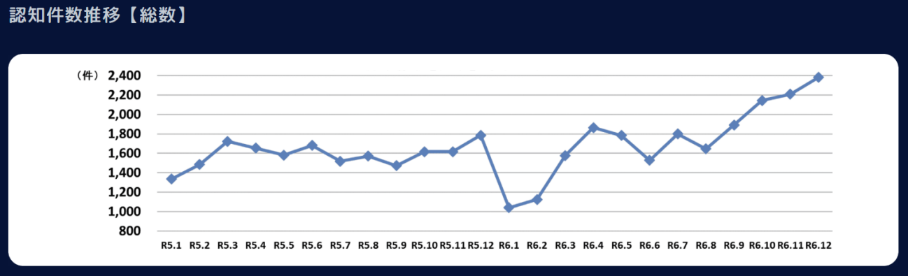 空き家の不正利用に関する具体的な統計は公表されていませんが、特殊詐欺の手口については広く公開されています。にも拘わらず、特殊詐欺事件は後を絶たず、認知件数や被害額は増加傾向にあります。