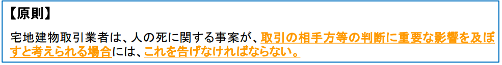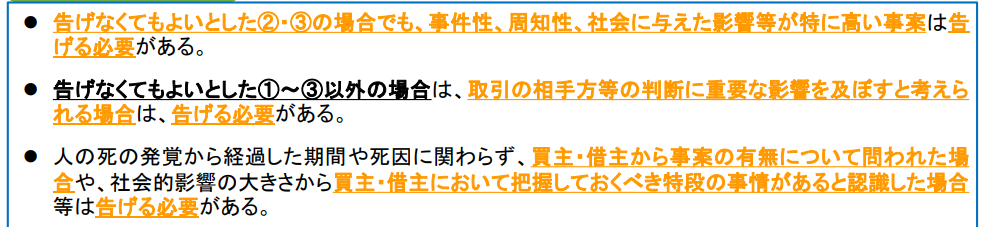 刑法罰を問われないことと、告知義務の有無は別の問題です。購入者や賃借人の判断に影響を与える事実については、告知する必要があります。これにより売却や賃借人の成約に悪影響が及んだ場合、管理の在り方について社会的責任を問われる可能性があるのです。