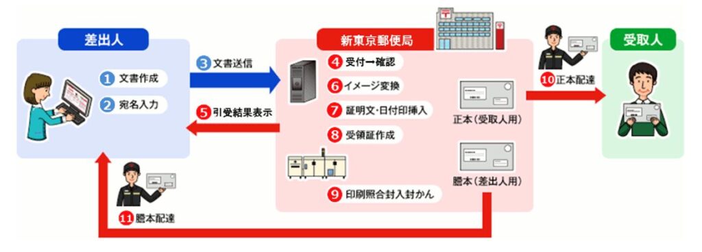 配達証明を付加することで、郵便物が「いつ」、「誰に」配達されたかを公的に証明する郵便物配達証明書(電子内容証明の場合は電子的情報)が差出人に届きます。