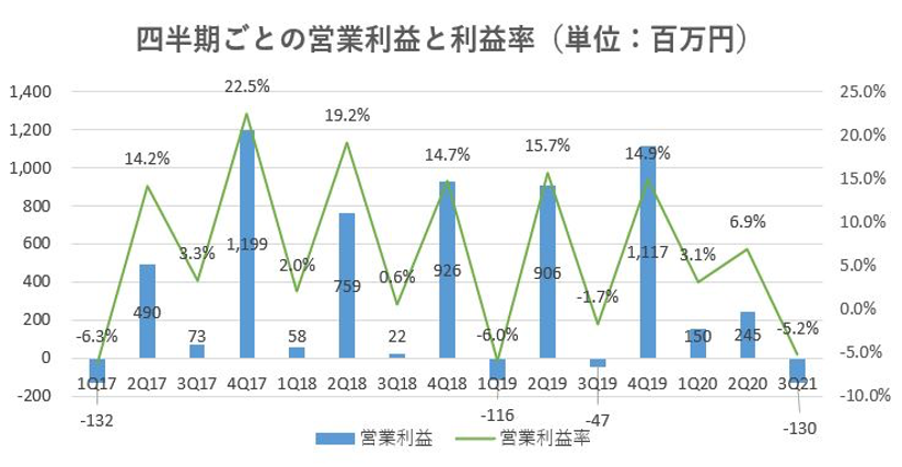 2020期には黒字化を目差しており、今期に入り赤字幅の縮小が見られるようになりました。