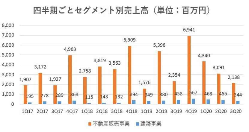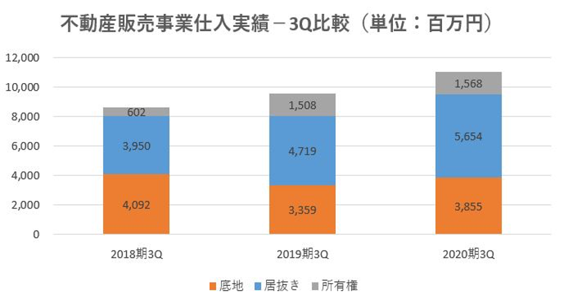 サンセイランディックの不動産売上は仕入から1年以内に販売される傾向があり、3Q20での仕入実績をみておくことは、今後1年以内の業績を予想するうえで重要な材料になります。