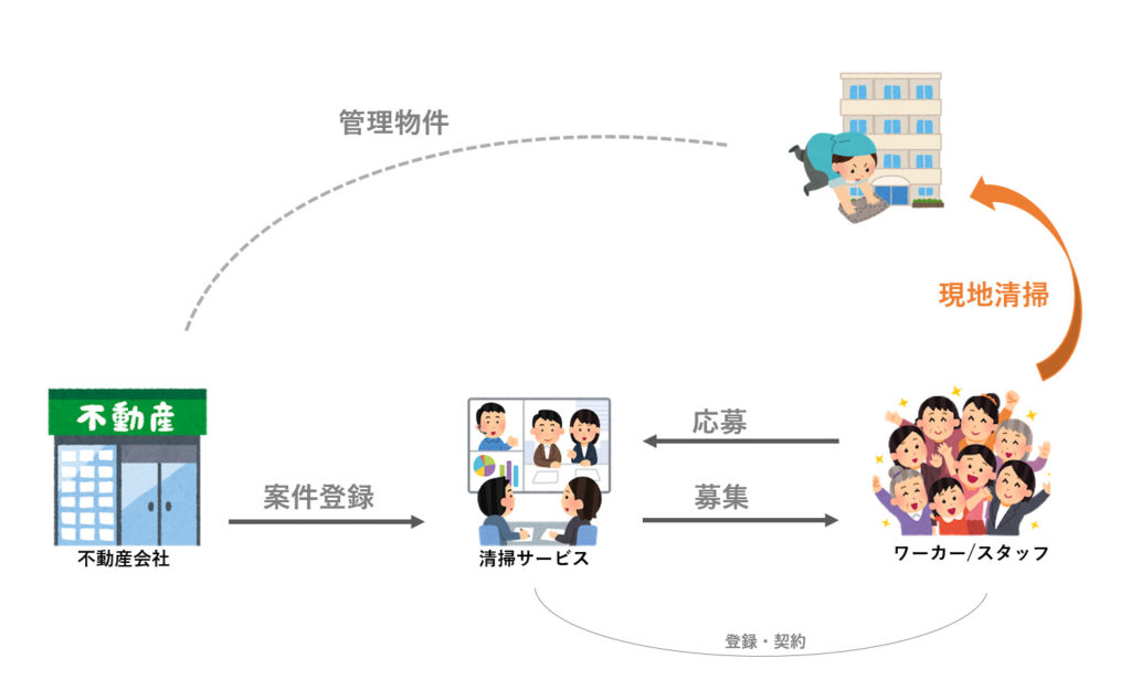 株式会社ビースタイル ギグワークスが提供するご近所ワークは、アパートマンションの管理事業社・オーナー向けに、近所の主婦に掃除を委託するという仕事のマッチングサービスを運営しています。